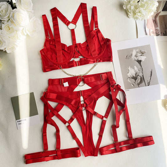 Ellolace Fine Lingerie Sexy Women's Underwear Crotchless 3-Piece Garter Bra And Panty Set Luxury Erotic Outfit Seamless Intimate