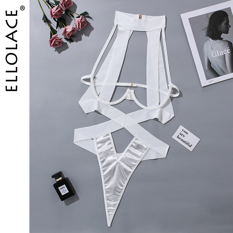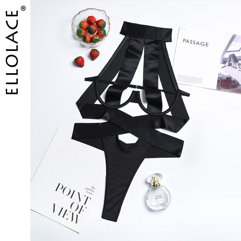 Bandage Sexy Bodysuit Women Halter Hollow Out Black Bottom Body