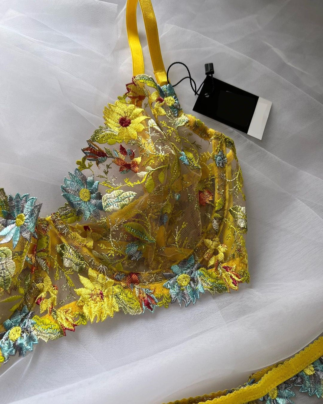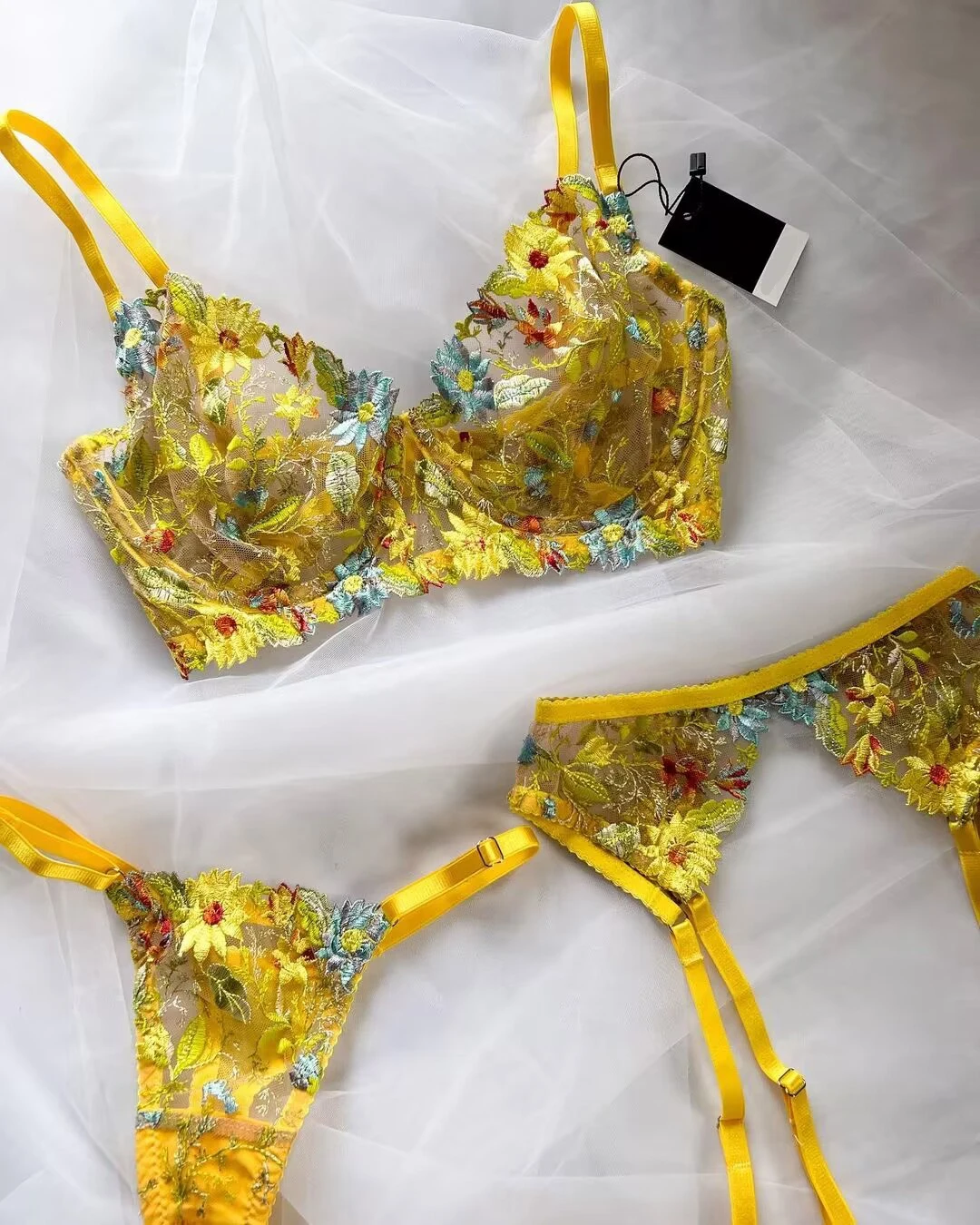 Floral Lace Sexy Garter Brief Sets 4-Piece Transparent